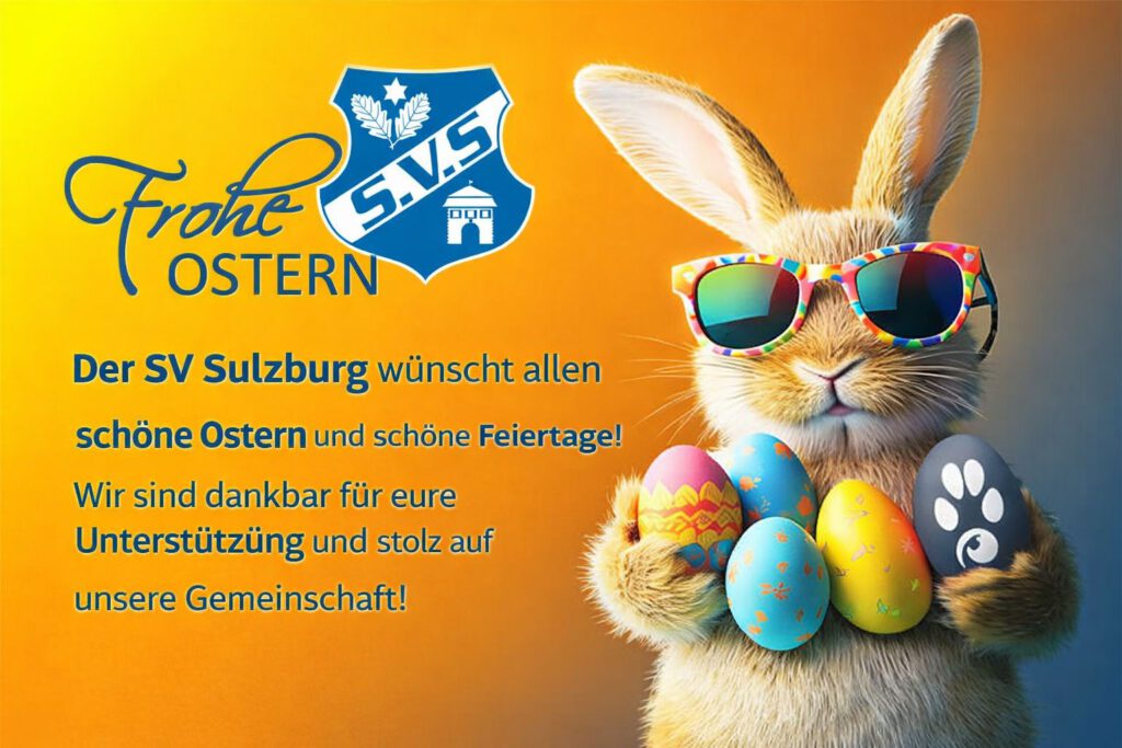 Der SV Sulzburg wünscht allen Mitgliedern, Fans, Unterstützern und Freunden des Vereins ein frohes und gesegnetes Osterfest sowie erholsame Feiertage.